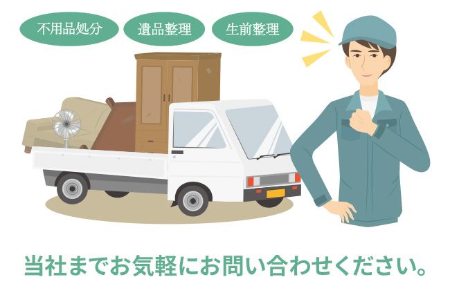 不用品回収や遺品整理を行いたい方は、当社までお気軽にお問い合わせください。