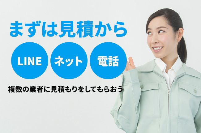 大抵の場合は直接依頼者の家で行う事が多いですが、最近ではLINEを使って見積もりを行う業者も増えているので、見積もりにきてもらう時間が無い、もしくはわざわざ時間をとって見てもらうのがめんどくさいという方は、そういった見積もりサービスを行っている業者に頼むことをおすすめします。