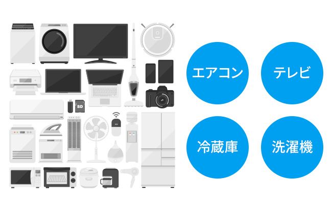 具体的には、エアコン、テレビ、冷蔵庫、洗濯機が対象になります。