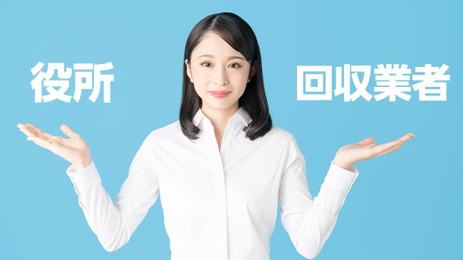そこで今回は、役所に依頼する場合と回収業者に依頼する場合の処分費用・処分品運搬時・手続きという3つの観点からまとめましたので、ご説明します。